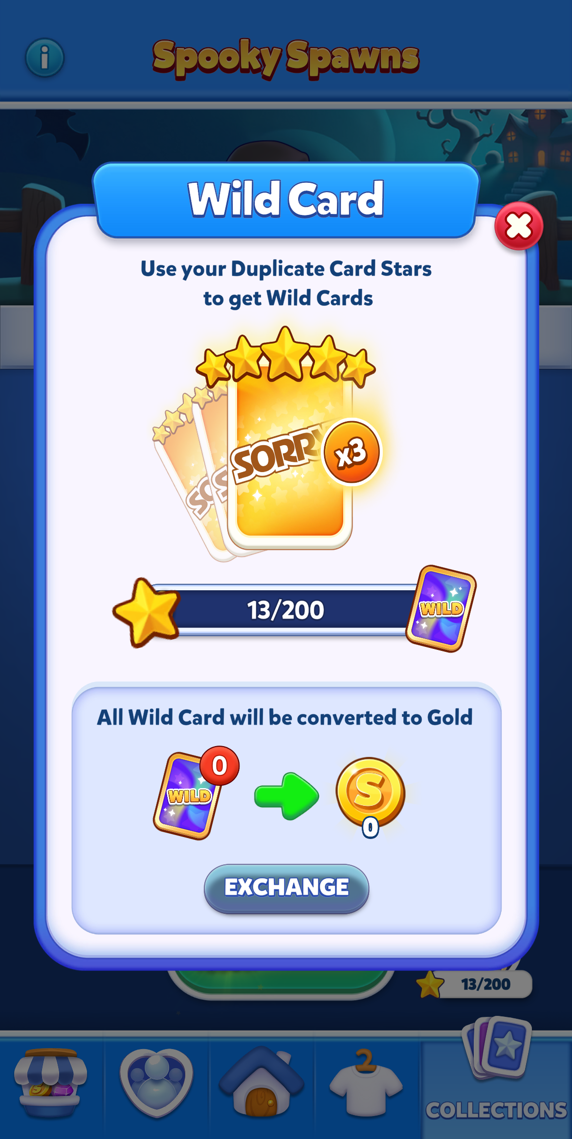 Once full, you earn a Wild Card to exchange for any missing cards (excluding 5-star cards) or Gold.