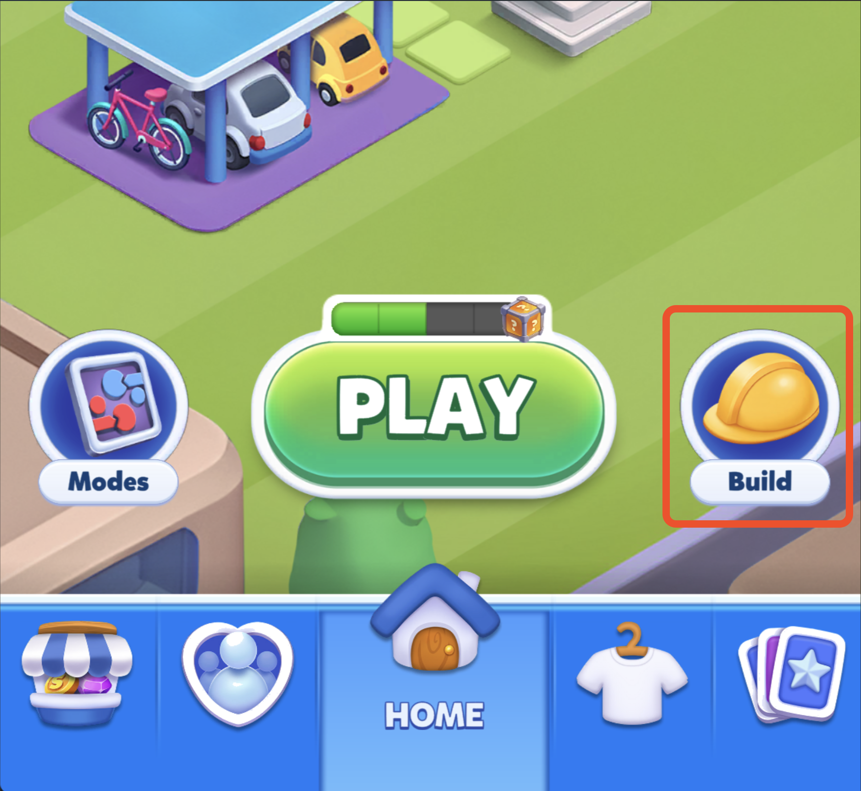 The Build feature lets you construct and upgrade structures in different areas of Sorry!-World.